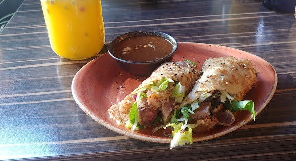 Sommerrollen gefüllt mit Reisnudeln, Eisbergsalat, Gurken, vietnamesischen Kräutern und Hoisinsauce, dazu Limettensauce. Wahlweise mit...